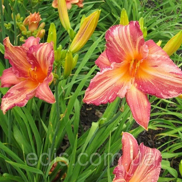 Саджанці багаторічних садових квітів: Лілейник Pink StripesДля вирощування лілійнику ідеальний склад ґрунту – багатий суглинок з хорошим дренажем. З позиції кислотності грунт повинна бути нейтральна або слабокисла. Садять рослини з весни до осені, але найкраще приживаються лілейники пересаджені навесні. Перед тим як посадити лілейник, посадковий матеріал потрібно за кілька годин до посадки в грунт замочити у воді або сильно розведеному мінеральному добриві, щоб коріння розбухли і ожили. В лунку глибиною 30 див. насипається горбком суміш, в яку входить перегній, пісок і торф з добавкою калійно-фосфорного добрива, золи і суперфосфату. Дуже важливо, щоб коренева шийка лілійнику перебувала на глибині не більше 2-3см. Відстань між лилейниками при посадці повинна становити від 60 до 100 див.