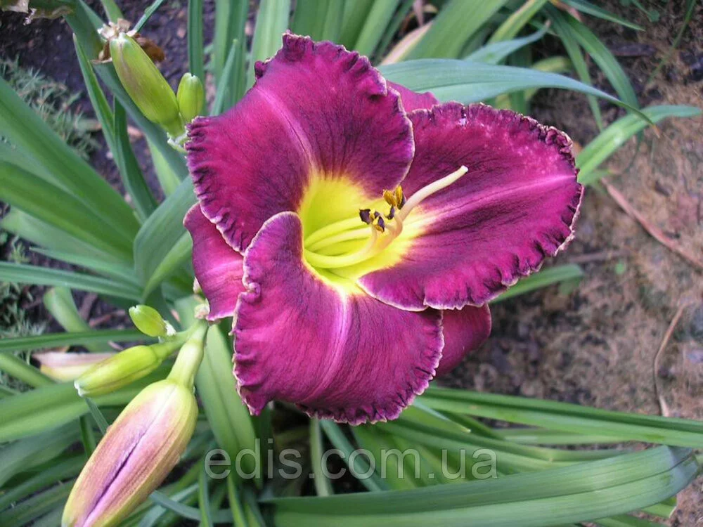 Лілейник Purplelicious Оригінатор Heemskerk, 2011 р Розмір Висота 60 см, діаметр 15 див. Цвітіння Ранньо-середній (червень-липень) Зона 5 (-29 / -23 °C) Темно-пурпурово-червоний з чорно-пурпурової очної зоною і з пухирчастої білою облямівкою над зеленим горлом.(Пурпурний Дуелянт). Напіввічнозелений. Тетраплоїд. Для выращивания лилейника идеальный состав грунта – богатый суглинок с хорошим дренажом. С позиции кислотности почва должна быть нейтральная или слабокислая. Сажают растения с весны до осени, но лучше всего приживаются лилейники пересаженные весной. Перед тем как посадить лилейник, посадочный материал нужно за несколько часов до посадки в грунт замочить в воде или сильно разведенном минеральном удобрении, чтобы корни разбухли и ожили. В лунку глубиной 30 см. насыпается холмиком смесь, в которую входит перегной, песок и торф с добавкой калийно-фосфорного удобрения, золы и суперфосфата. Дуже важливо, щоб коренева шийка лілійнику перебувала на глибині не більше 2-3см. Відстань між лилейниками при посадці повинна становити від 60 до 100 див.Оплата та доставка