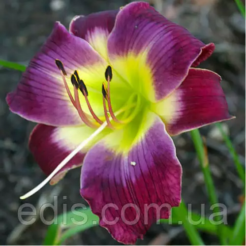 забарвлення бутона: пурпурно-бордового кольору у поєднанні з жовто-зеленим горлом;