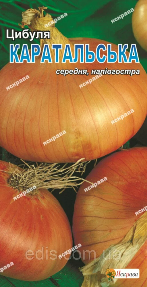 Цибуля Каратальска 1 гСередньостиглий, урожайний сорт. Вирощують в однорічній культурі з насіння. Цибулина міцна, округла. Суха луска золотисто-жовта. Маса цибулини 50-120 г, смак середньо-гострий. Цибулю потрібно вирощувати на родючих, добре оброблених, пухких, нейтральних грунтах. На одному місці вирощують не частіше ніж один раз на шість років. У відкритий гунт насіння висівають якомога раніше, на глибину 1 див.Оплата та доставка