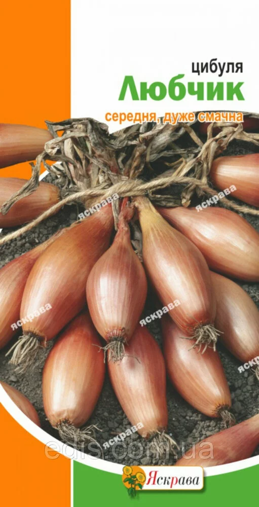Цибуля Любчик 1 гСередньоранній сорт. Вегетаційний період від сходів до стану листя 85-100 днів. Цибулини видовжено-овальної форми, середнього розміру, масою 100-150 г, середньо-гострого смаку, жовто-коричневе забарвлення. Сорт цінується за відмінні смакові та товарні якості. Рекомендується для вирощування в однорічній культурі з насіння, а також через сіянку.Оплата та доставка
