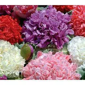 Мак махрова сумішАлого, білого, рожевого, пурпурного, лілового забарвлення махрові маки невибагливі до ґрунтів, практично не вимагають уваги і ростуть на одному місці до 10 років