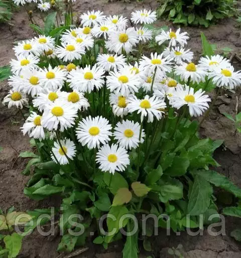 Низькорослі і грунтопокривны рослини: Маргаритка гібридна РомашковаМаргаритка - трав'яниста, багаторічна, напіввічнозелена рослина сімейства Астрові. Зимуюча куртинка мініатюрного листя у квітні увінчується великими білими квітками.
