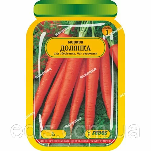 Морковь Долянка 2 гВысокоурожайный сорт позднего сорта созревания. Корнеплоды вырастают ярко-оранжевые, ровные, достигают в длину до 28 см.