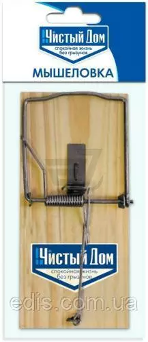 Мишоловка-капкан на дерев'яній основіМеханічний капкан з пружинним механізмом для упіймання дрібних гризунів. На спеціальний тримач закріплюється принада. Мишоловка встановлюється в передбачуваному місці пересування гризунів, недоступному для дітей та домашніх тварин. Доторкнувшись до приманки, гризун приводить в дію механізм. Капкан захлопується миттєво, притискає і надійно утримує гризуна.