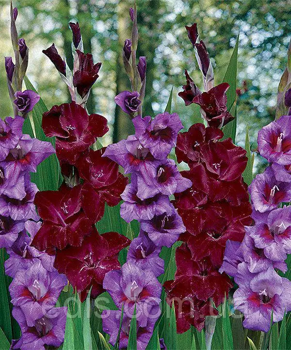 Арт-набір цибулин гладіолусів Літня нічЧервоний і фіолетовий з винним очком крупноквіткові гладіолуси у цій композиції об'єднані магією оксамитових відтінків.