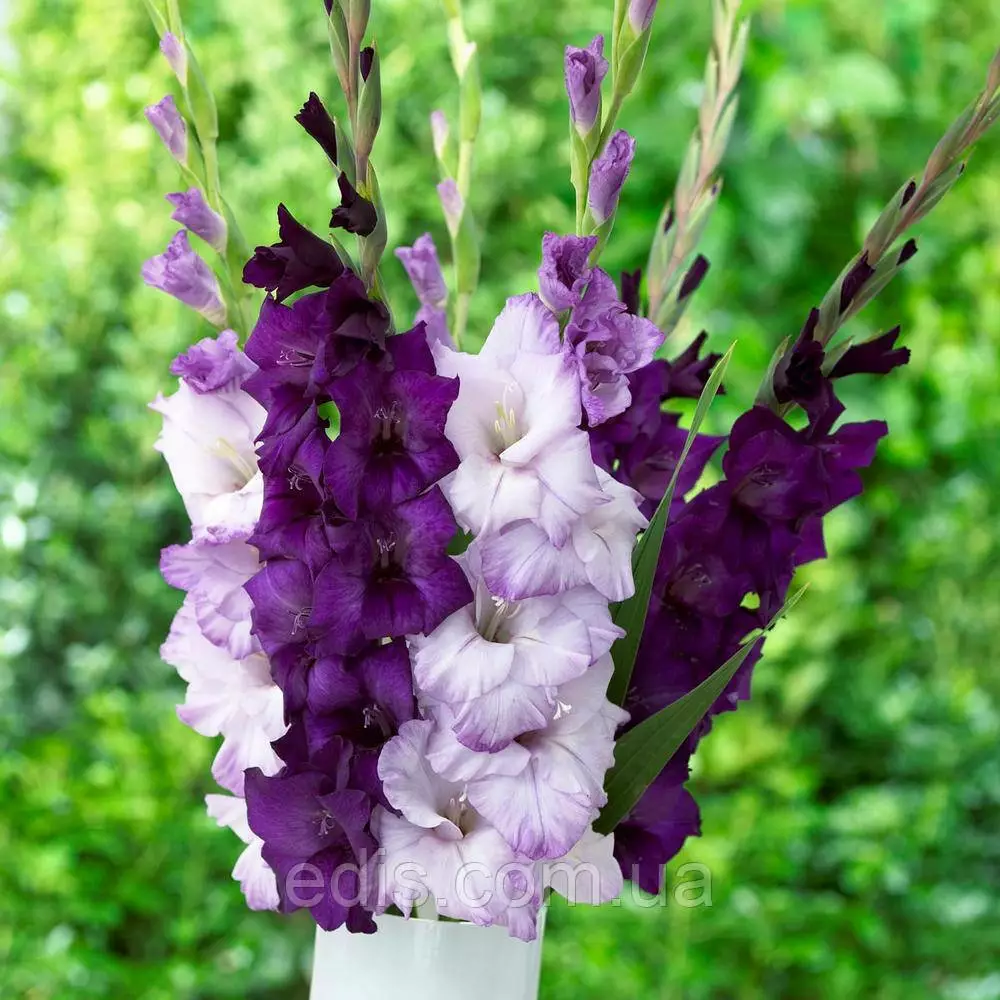 Арт-набір цибулин гладіолусів МагіяМагічний темно-фіолетовий і ніжний бузково-білий гладіолуси м'яко поєднуються і підтримують один одного в фіолетовому відтінку. Цей магічний союз заворожує погляд своєю витонченою елегантністю.