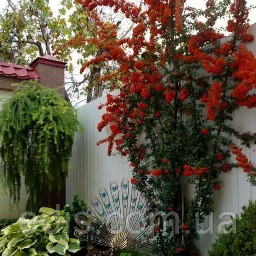 Саджанці декоративних чагарників: Піраканта KuntayiНапіввічнозелений кущі. Листя літом зелене, а восени червоні.