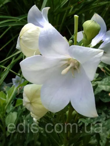 Сорт ширококолокольчика крупноквіткового Фуджі Альбус з білими квітами - дуже гарний високий сорт ширококолокольчика. У висоту кущ близько 70 див. Зірчасті квітки в діаметрі до 8 див. На деяких квітках можуть проявлятися сині прожилки.