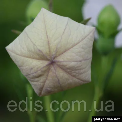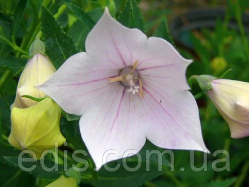 Рожевий високорослий великоквіткова платикодон (ширококолокольчик) Fuji PinkPlatycodon grandiflorus Fuji Pink - високорослий багаторічний дзвіночок з великими широко відкритими квітками, компактними щільними кущами і м'ясистими кореневищами. Рожевий ефект квітки створюється завдяки густій мережі рожевих жилок по білому тлу пелюстки. Декоративні і бутони платікодон, які схожі на китайські ліхтарики.