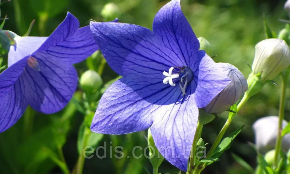 Ширококолокольчик Фуджі Блу (Platycodon grandiflorus Fuji Blue) Сорт ширококолокольчика крупноквіткового Фуджі блу із небесно-синіми квітами - дуже гарний високий сорт ширококолокольчика. У висоту кущ близько 70 див. Зірчасті квітки в діаметрі до 8 див. Платикодон крупноквітковий (Platycodon grandiflorus) або ширококолокольчик - невибагливий сонцелюбива багаторічник з прекрасними зірками-квітами і забавними бутонами-бомбочками. З усіх дзвіночків у платікодон великоквіткових найбільші квіти. Цвітуть ширококолокольчики в липні-серпні, ніякого особливого догляду не вимагають, хіба що молодий одиночний кущик може поламатися вітром і тому його краще підв'язати. Розмножуються платикодоны насінням та поділом кореневища. Вони не люблять кислий грунт, тому навіть у чорнозем додайте при посадці трохи попелу, він знизить кислотність і підгодує ширококолокольчик фосфором при цвітінні. Обережно! Платикодоны переопиляются між собою! Якщо хочете отримати чистого насіння сорту, не саджайте різні сорти поруч.Оплата та доставка