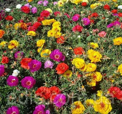 Яскравий, посухостійкий портулак – найкращи килимовий однорічник для альпійських гірок, схилів і бордюрів.Однорічна напівсукулентна рослина із сланкими, гіллястими стеблами. Стелеться килимом 10-15 см. висотою. Квітне дуже рясно усе літо яскравими повними квіточками 4 см. у діаметрі. Квіти портулаку однотонні, мають насичені, чисті кольори: червоний, білий, жовтий, рожевий, помаранчевий. Не буває тільки блакитного портулаку.