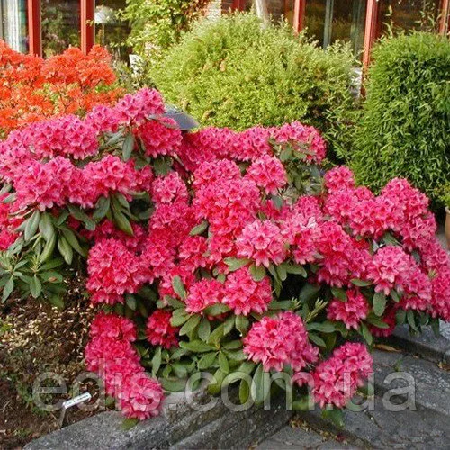 Рододендрон Nova Zemblaкущі гіллястий 120-150 см (максимум до 200 см), ширина – до 120-150 см;