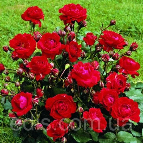 Саджанці декоративних чагарників: Троянда Червона бордюрнаНевысокие кусты красной розы радуют обильным цветением все лето.