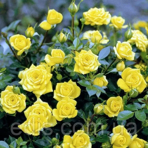 Роза бордюрна Жовта лялька (Yellow doll)Кущ 25-45 див. у висоту. Квітки дрібні, в кистях від 2 до 10 шт. Аромат легкий, ледь вловимий. Стійкий до основних хвороб троянд. Гарна троянда для бордюру, контейнерів, балконних ящико.