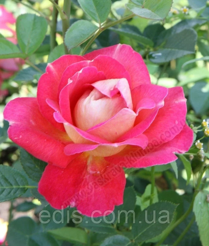 Цей сорт цілком виправдовує свою назву, віртуозно міняючи маски і обличчя, і лише однією своєю присутністю в саду піднімає настрій оточуючим. Павичеве око практично не має однакових квіток на кущі – всі вони більшою чи меншою мірою мають малиново-рожевий, насичено-полуничний, жовтий (від блідо жовтого на зовнішній поверхні пелюстки, до яскраво-жовтого у центрі внутрішнього) кольору. Також не рідкість для цього сорти більш світлі смужки і цятки на поверхні пелюстки. Махрові квітки (близько 40 пелюсток) вражають різноманітністю форм, а за рахунок злегка гофрованого краю пелюстки вони завжди мають якоїсь легкістю. Цю троянду любителі квітів часто асоціюють з хамелеоном, а її забарвлення нерідко називають «помітною». Крім яскравою, ефектною забарвлення, може похвалитися високою стійкістю до хвороб та морозів. Красу високих кущів (близько 2-х метрів) з безліччю квіток, що досягають в діаметрі 9-11 см розташованих як поодиноко, так і зібраних у суцвіття, підкреслює здорова, блискуча, шкірясте листя насичено зеленого кольору. Вагомим «плюсом» в характеристиці цієї троянди стане хороша стійкість до дощів та спеку.Оплата та доставка