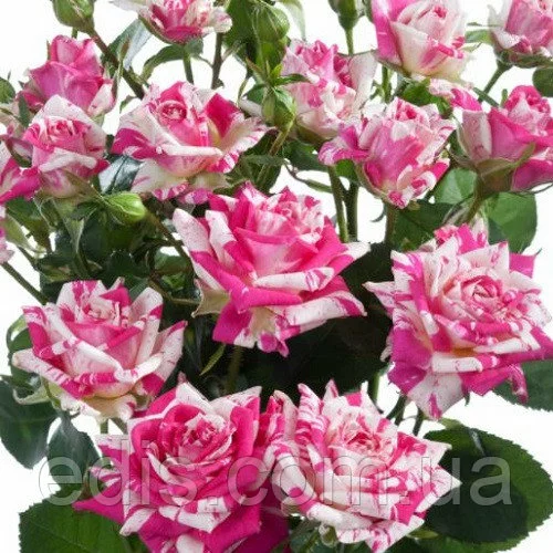 Саджанці декоративних чагарників: Троянда спрей Сільвер Шэдоу (Silver Shadow)Цікаве забарвлення пелюсток, червоно-рожевий фон прикрашають виразні білі смуги і штрихи. Сорт невибагливий у вирощуванні і відрізняється безперервним цвітінням протягом усього сезону.
