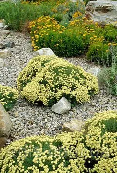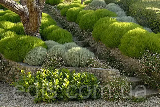 Саджанці декоративних багаторічників: Сантоліна зелена (Santolina viridis)Сантоліна – рід середземноморських вічнозелених напівчагарничків, які утворюють декоративні округлі кущики, схожі на хвойники. Влітку кущ покривається безліччю невеликих квіточок-гудзичків кремового кольору. Вся рослина багата ефірними маслами, виділяє приємний пряний аромат. Молоді пагони і листя використовують у кулінарії як приправу, а також у народній медицині.