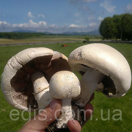 Міцелій грибів: Печериця садовий (для повноцінної грибниці рекомендований мінімальний вага міцелію 100 г)Цей вид становить 80% від світового обсягу виробництва грибів. А все із-за доступності вирощування і приємного смаку. Їх можна вирощувати в тіні саду або в підвалі.