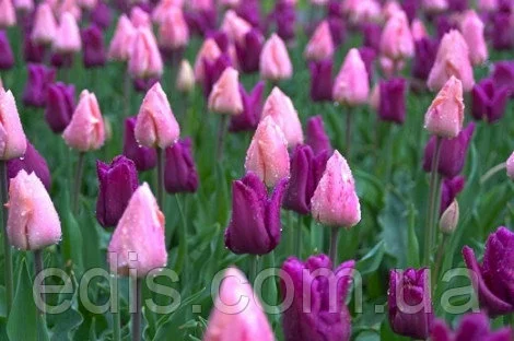 В набір входить 9 цибулин тюльпанів класу Тріумф рожевого і лілово-фіолетового кольору.