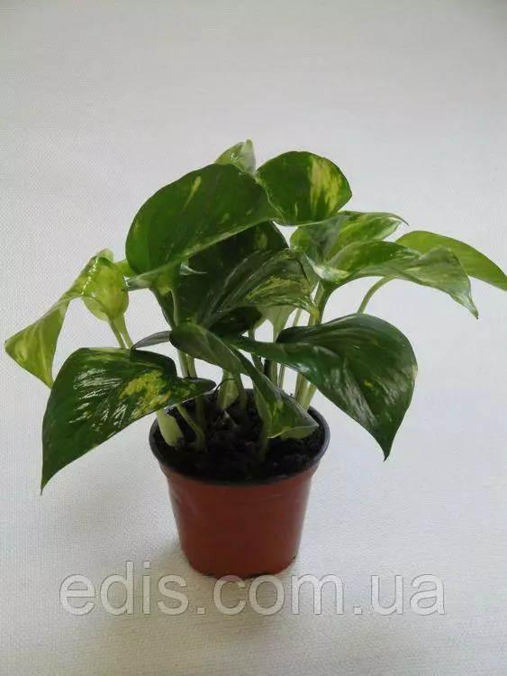 Кімнатна ліана: СциндапсусУ перекладі назва цього тропічної рослини із сімейства Ароїдних означає «дерево, подібне плющу». Звичайно, Сциндапсус - не дерево, а потужна ліана-полуэпифит, яка в тропічних лісах обвиває стовбури дерев, піднімаючись по ним на висоту до 15 м. Основні переваги Сциндапсуса золотистого у декоративному озелененні приміщень і зимових садів: дуже красива шкіряста, глянсове листя з декоративними жовтими мазками і бризками по темно-зеленому фону, невибагливість, тіньовитривалість, стійкість до хвороб і шкідників.