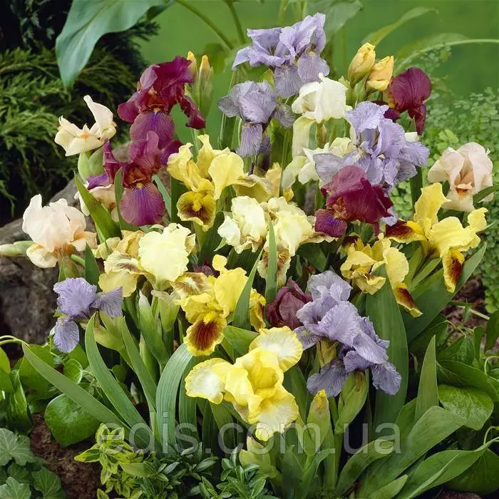 Саджанці багаторічних квітів для саду: Ірис карликовий 10 саджанців в наборі.Самі низькорослі сорти бородатих ірисів для оформления кам'янистих гірок, переднього плану сонячних квітників, бордюрів садових доріжок і контейнерів. Висота 15-35 см. В набір входять 10 саджанців, при цьому набори складаються з більш ніж 50-ти сортів, тобто в різних наборах не всі сорти повторюються.