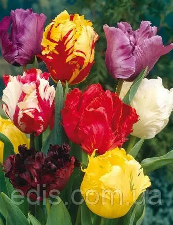 Опис товару: набір цибулин квітів "Мікс папугових тюльпанів, 9 цибулин/уп."Найбільш незвичайні тюльпани, які викликають найсуперечливіші почуття, але точно нікого не залишать байдужим, – це папугові тюльпани. Хтось ними захоплюється, а комусь вони здаються навіть жахливими. Насправді, різні сорти тюльпанів цієї групи можуть справити на Вас абсолютно протилежне враження. Щоб знайти "свого" папужку, потрібно подивитися багато сортів наживо.