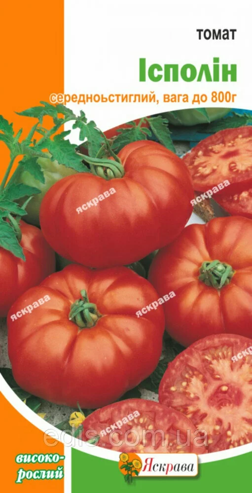 Томат Велетень 0,1 гСередньостиглий сорт. Вегетаційний період від сходів до стиглості 110-120 днів. Кущ сильнорослий, висотою 150-180 см. Плоди округло-плоскої форми, червоного кольору, масою 300-800 г, м'ясисті, ароматні, відмінних смакових якостей. Сорт цінується за високу врожайність і велику плодючість. Плоди використовують для споживання у свіжому вигляді та переробки.Оплата та доставка