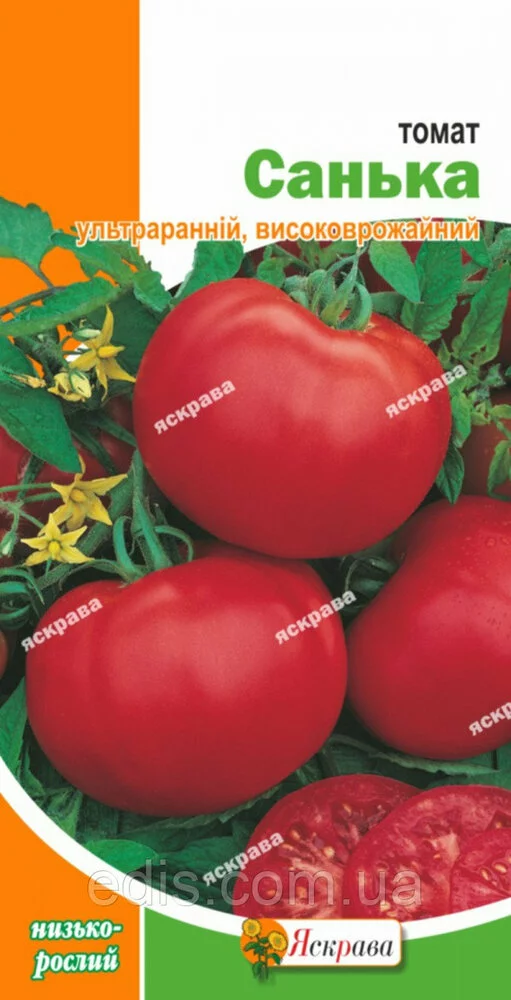 Томат Санька 0,1 г Помідор – овоч улюблений, але досить примхливий, що і засмучує багатьох городників, які не можуть приділяти своїм гядкам належної уваги. Томат Санька – це справжній «свій хлопець» для зайнятої господині, тому і рясніє про нього весь Інтернет самими чудовими відгуками. Надмірною вимогливістю і вередливістю він точно не відрізняється. Помідори Санька мають наступні характеристики: відносяться до низькорослої групі (30-50 см) і не вимагають трудомісткої підв'язки куща; можуть обійтися без процедури обривання пасинків. Але, звичайно, якщо ви пройдетеся з секатором, культура «відповість вам вдячністю; відрізняються швидким дозріванням. Помідори Санька одними з перших (через 75-95 днів) будуть становити основу смачного салату; мають невеликі округлі плоди. Вони також підходять для засолювання і консервування. До опису сорту варто додати, що він досить урожайний (7-8 кг/м2). Необхідно згадати і про стійкість даного томата до багатьох захворювань і сирої погоди.Оплата та доставка