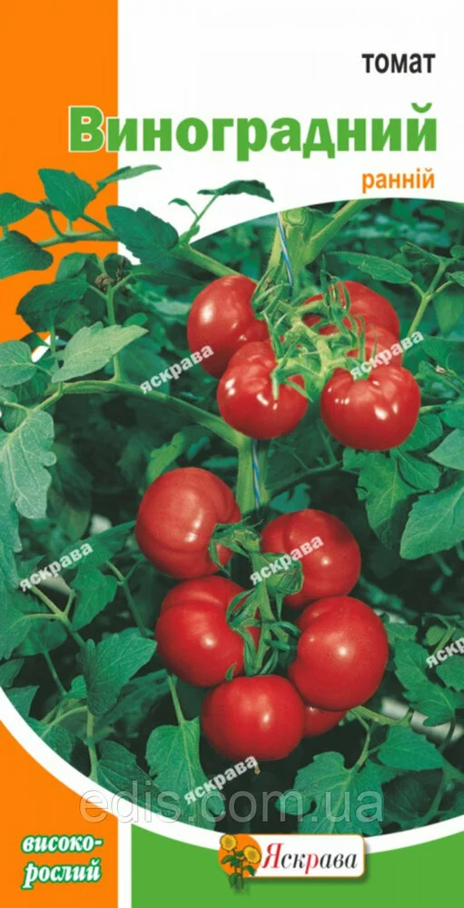 Томат Виноградний 0,1 гДавно було відмічено, що дикорослі помідори хоч і дрібні, але відрізняються особливо солодким смаком, а також стійкістю до хвороб. Томат Виноградний – це сорт, в якому втілені ідеї можливості вирощування безлічі мініатюрних помідорів на кисті. Такі «виноградини» або «оливки» (по 10-30 г) сподобалися не тільки шеф-кухарям, покупців у супермаркетах, але і звичайним городникам. Помідор Виноградний використовується для приготування незвичайних страв, цікаво виглядає в банку, його дуже люблять діти. Він має щільну шкірку, солодкий смак, містить мало води. Для успішного його вирощування слід враховувати, що: це високорослий сорт. 1,5 м – це не межа, може зростати і до 2 м; кущ має кілька стебел. Оптимально залишити 2-3 втечі; томати зав'язуються на численних довгих гілках по 20-30 штук, збір яких потребує особливого терпіння. Купити насіння помідора Виноградний пропонує компанія «Едіс».Оплата та доставка