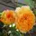 Саджанці паркових троянд Жорж Данжан (Georges Denjean)Квітки на стеблі розташовані переважно поодиноко. Підходить на зріз. Красиві форми сильний кущ з великими квітами. Середина жовто-жовтогарячих відтінків, а по краях рожеве напилення.
