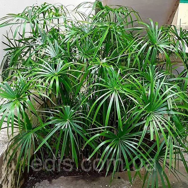 Циперус очереднолістний (Cyperus alternifolius) Циперус (сить, ситівник) - тропічні вічнозелені трав'янисті рослини із сімейства осокових. В природі всі види циперусів зустрічаються на болотах і в прибережній зоні водойм, досягаючи у висоту до двох і більше метрів. У кімнатних умовах Циперус очереднолістний (або зонтичний)рідко виростає вище 1,5 м. Як кімнатна рослина Циперус абсолютно невибагливий і підійде для будь-яких приміщень: житлових кімнат, громадських приміщень, балконів, терас. Молоді рослини можна вирощувати в акваріумах і штучних водоймах. Основна умова краси і здоров'я цього чарівного екзотичної рослини - завжди вологий грунт. Освітлення циперуси люблять яскраве, але розсіяне, добре ростуть і в півтіні. У зимовий час циперус чудово переносить прямі сонячні промені, але влітку від прямого сонця листя обгорають. У літній період оптимальною температурою близько +18...+22 градусів, а в зимовий період циперус воліє прохолоду, але не нижче +12...+14 градусів. Квітка дуже вологолюбні, тому його потрібно поливати рясно і часто, щоб грунт був постійно вологим. Скорочують полив тільки взимку, якщо знижується температура повітря. Листья нуждаются в высокой влажности, поэтому их тоже нужно часто опрыскивать отстоянной водой. В зимнее время, когда воздух в помещении особенно сухой, у циперуса сохнут кончики листьев. Также циперус нуждается в свежем воздухе, поэтому идеально - перенести его на тёплое время года на балкон или террасу. В весенне-летний период подкармливают растение один раз в 2 недели комплексным удобрением для декоративно-лиственных растений. Если зимой циперусу достаточно света и тепла, он продолжает активно расти - в таком случае подкормки нужно продолжать в половинной дозе или подкармливать реже. Пересаджувати квітка при необхідності можна протягом усього року, якщо коріння вже тісно в горщику. Грунт для циперус повинен бути влагоемким, повітропроникним і поживним. Рослину можна розмножувати насінням, верхівковими живцями, поділом куща. Найшвидший спосіб розмноження - поділ кореневища при пересадці. Верхівкові живці циперус дуже просто вкорінюються у воді. При цьому є цікава особливість - зрізані живці ставлять у воду "догори ногами". У кімнатних умовах, особливо в зимовий час, циперуси можуть пошкоджуватися попелиць і павутинним кліщем.Оплата та доставка