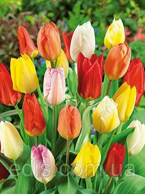 Цибулини квітів: Тюльпан гібрид Фостера суміш сортівВеликі, високі, ранецветущие сорти тюльпанів. Забарвлення квіток в основному теплий, чистий, ніжний, від білого до червоного. Більшість сортів одноколірні або з м'якими переходами в темніший чи світліший відтінок того ж кольору.