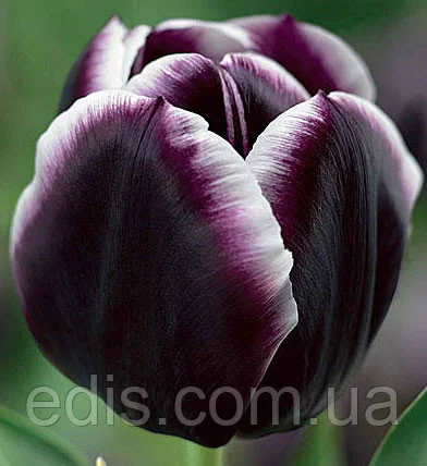 Бутон пурпурно-чорний з білою облямівкою, великий, з квадратним денцем.