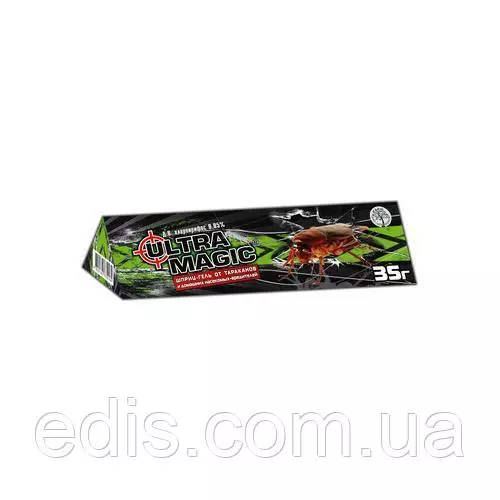 Призначення препарату: принада для боротьби з тарганами і домашніми комахами (клопами, блішками, щипалками, многоножками і рудими мурахами).Склад препарату: хлорпірифос 0,5 г/кг, заманник, харчові та інертні компоненти до 100%
