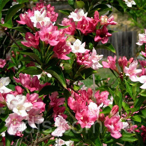 Опис: Вейгела КарнавалДивовижний новий сорт вейгеллы – на кущі одночасно присутні цетки винно-червоного, рожевого і білого забарвлення.