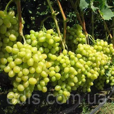 Виноград АркадіяАркадія - столовий сорт винограду. Ця солодка батьківська парочка, де Молдова – в першу чергу, носій генів стійкості, а Кардинал – відповідав за якість, дала чимало непоганих сортів і форм винограду, і Аркадія, мабуть, кращий. Сорт відноситься до дуже рано (115-125 днів). Середньо - або сильнорослий. Кетяги великі і дуже великі, 500-700 г (кращі до 2 кг), циліндро-конічні, з лопатями, частіше щільні. Ягоди великі і дуже великі,- 28x23 мм (і більше), 7-15 г, в залежності від навантаження куща і агротехніки, яйцеподібної (серцеподібної форми, білі. Цукристістю не блищить до 15-16% - що нормально, для врожайних сортів, але при невисокої кислотності 4-6 г/л, смак простий, ненав'язливий, легкий. При повному достиганні — можливий легкий мускатний аромат. М'якоть м'ясисто-соковита, шкірка міцна, але не товста - транспортабельність висока. Пагони визрівають добре, тільки в сприятливі роки на неперегруженных кущах, але, як правило, визрілої лози достатньо для формування куща. Плодоносних пагонів 55-75%, коефіцієнт плодоносності 1,1-1,5. Урожайність дуже висока, тут Аркадія – один з рекордсменів. Сорт винограда чутко реагирует на уход за ним, можно, в крайнем случае, "убить" куст, получив к осени массу несозревшего урожая (что непросто, Аркадия старается вытянуть весь урожай, реагируя на перегрузку задержкой в созревании) и совершенно невызревшей лозы, так и получать роскошные грозди с внушительными ягодами не в ущерб урожаю. На удобрения сорт реагирует положительно, но с соблюдением разумных доз. Устойчивость к милдью повышена - около 3,5 баллов (требует двух опрыскиваний), к оидиуму - требует обычной защиты. При перепадах влажности в почве возможно растрескивание ягод. Витримує морози до -21°С. Укорінюваність живців дуже хороша, потужна коренева, саджанці сорту Аркадія швидко набирають обертів і рано вступають в плодоношення. Обрізка можлива як довга, так і коротка з навантаженням не більше 8 пагонів на кв. м площі живлення куща, з обов'язковою нормуванням суцвіттями. Сумісна з більшістю підщеп.