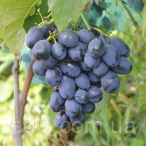 Саджанці винограду Чорна ПантераТемні довгасті ягоди дозрівають на великих і пухких гронах. Шкірка не розтріскується від дощу завдяки достатньої щільності, з'їдається легко. Ягоди можна вирощувати на продаж, для виготовлення вина або заготівлі соку. Сорту не потрібні інші види, оскільки квітки обох статей і чудово запилюються.