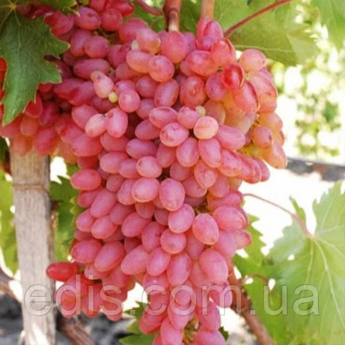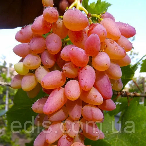 Саджанець винограду кишмиш МріяБезнасінний сорт рожевого винограду з дуже великими плодами відмінної якості і смаку. Ягоди не обсипаються, в холодильнику грона добре зберігаються аж до нового року.