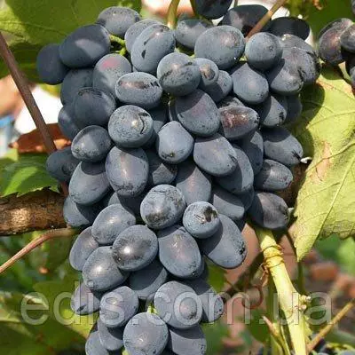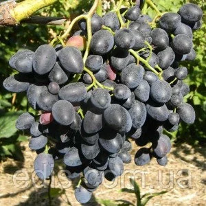 Виноград Надія АЗОСНадія АЗОС - сорт винограду столового призначення, ранньосереднього терміну дозрівання. Дозріває переважно у другій декаді серпня або початку третьої. Кущі сильнорослі. Квітка двостатева. Врожайність 160 центнерів з гектара. Грона середньої щільності або пухкі, конічні або гіллясті (вагою 400-600 г). Ягода видовжено-овальна, простого смаку, синя (чорна) - 6-8 р. Цукристість 15-17%, кислотність - 7-8 г/л. Сорт винограду Надія АЗОС стійкий до мілдью,сірої гнилі ягід, підвищена стійкість до оїдіуму.Середньої або нижче середньої зимостійкості. На один пагін припадає 1,6 суцвіття. Живці Надії АЗОС слабо окореняются. Має високі показники товарності та транспортабельності