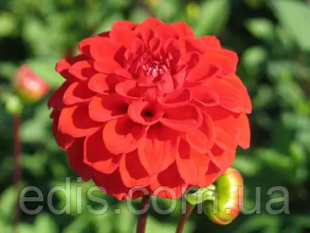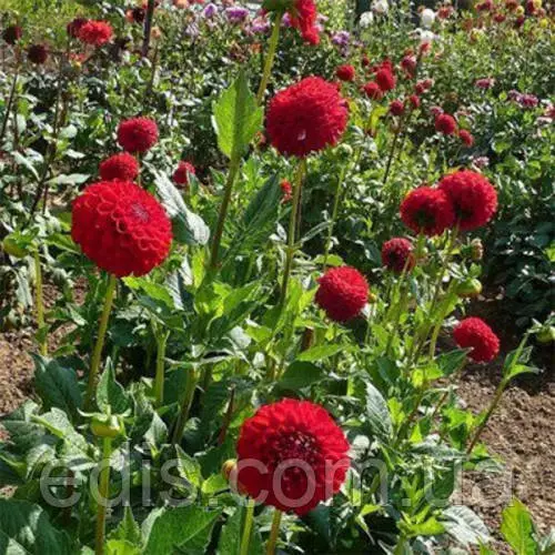 Бульби багаторічних квітів: Жоржини Помпонна NescioРясноквітуча жоржина універсального призначення. Квітки середнього розміру, кулеподібні, бадьоро дивляться вгору і в сторони, не никнуть, на довгих квітконіжках, класичне поєднання червоного акценту і жовтого підсвічування. Кущ добре самостійно кущиться, рано зацвітає, стебла міцні, під вагою квіток не хилиться.